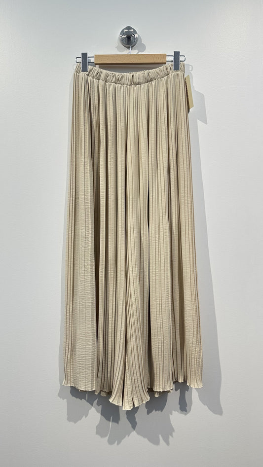 Elegant Long Pleated Trousers - Beige