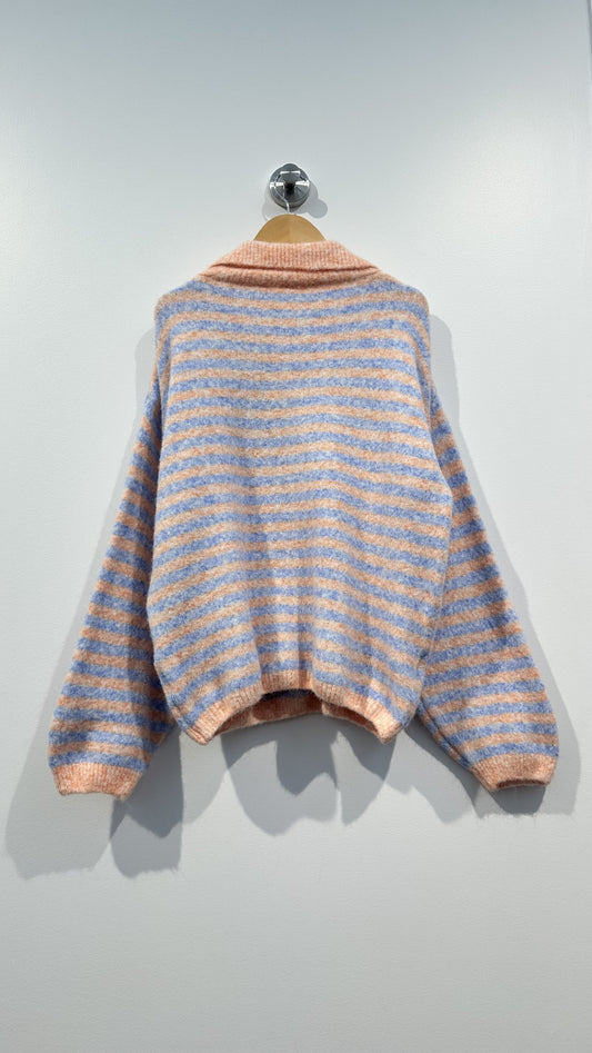 Striped Collared Knit - blue and orange